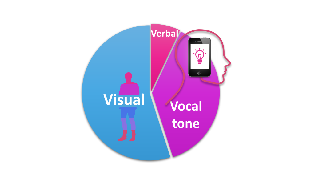 - Visual – Body Language, Facial Expression, Gestures – 55%