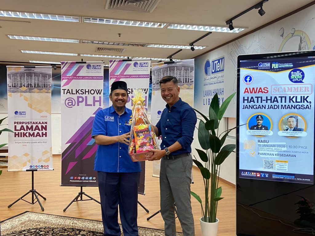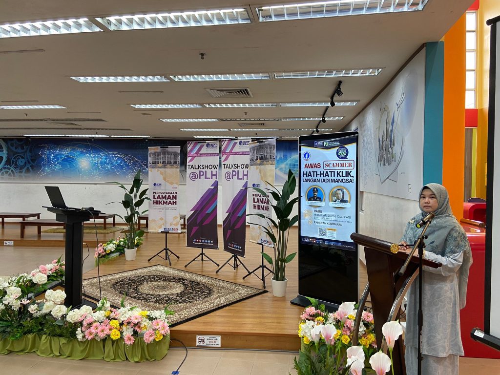Pada 15 Januari 2025 (Rabu), Perpustakaan Laman Hikmah (PLH) telah menganjurkan program Talkshow@PLH bertajuk “Awas Scammer: Hati-Hati Klik, Jangan Jadi Mangsa!” bagi berkongsi maklumat penting kepada warga kampus dan komuniti setempat mengenai ancaman penipuan dalam talian. Program yang berlangsung di Ruang Santai, Aras 2, Perpustakaan Laman Hikmah, Kampus Induk, bertujuan untuk meningkatkan kesedaran mengenai bahaya penipuan siber yang semakin berleluasa serta memperkenalkan pelbagai jenis modus operandi yang digunakan oleh penjenayah siber.