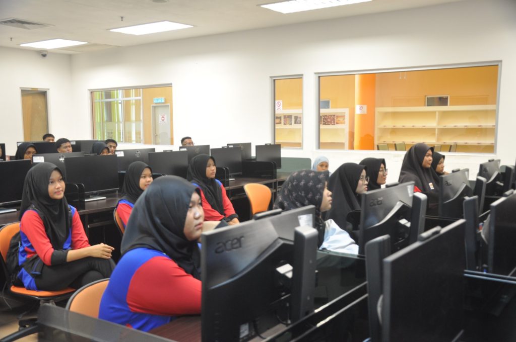 Program lawatan dimulakan dengan sesi taklimat yang disampaikan oleh Pustakawan dari Unit Rujukan. Pelajar dan guru diberi penerangan mengenai latar belakang, koleksi bahan, perkhidmatan dan kemudahan.