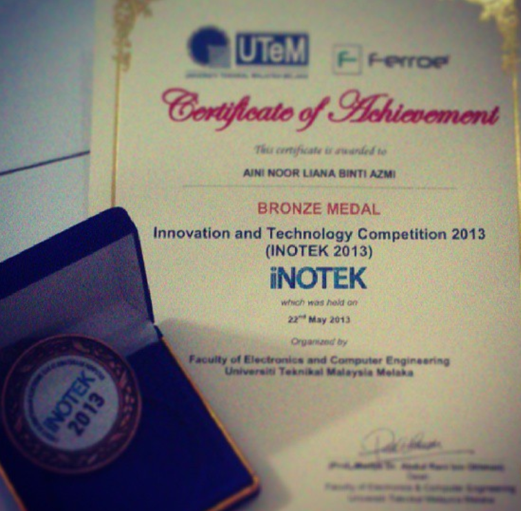 | 2013/2014 | AINI NOOR LIANA BINTI AZMI | BENT | Prediction of Propagation Path Loss Model In Suburban Area, INOTEK 2013 – BRONZE medal | Completed |