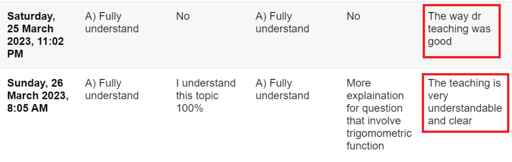 Feedbacks are collected from my beloved students using Padlet starting from session 2020/2021.