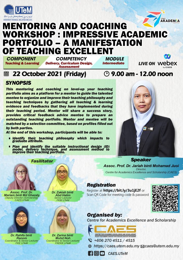 Facilitator in Mentoring and Coaching Workshop: Impressive Academic Portfolio 2021