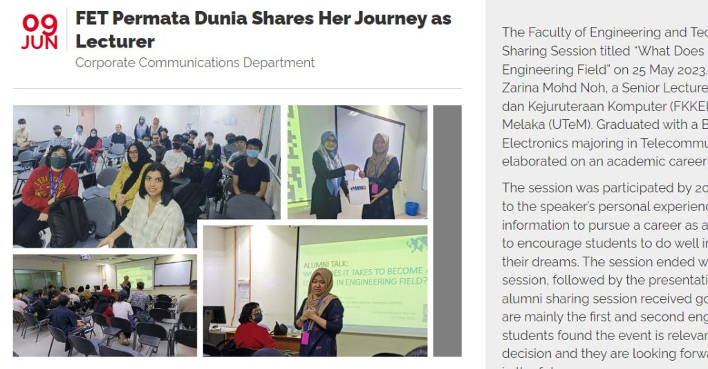 Program: Alumni Sharing Session at Multimedia University, Melaka, Malaysia