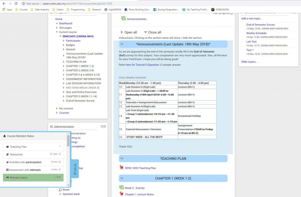 … screenshot of my course content in ULearn, an online learning platform in UTeM …