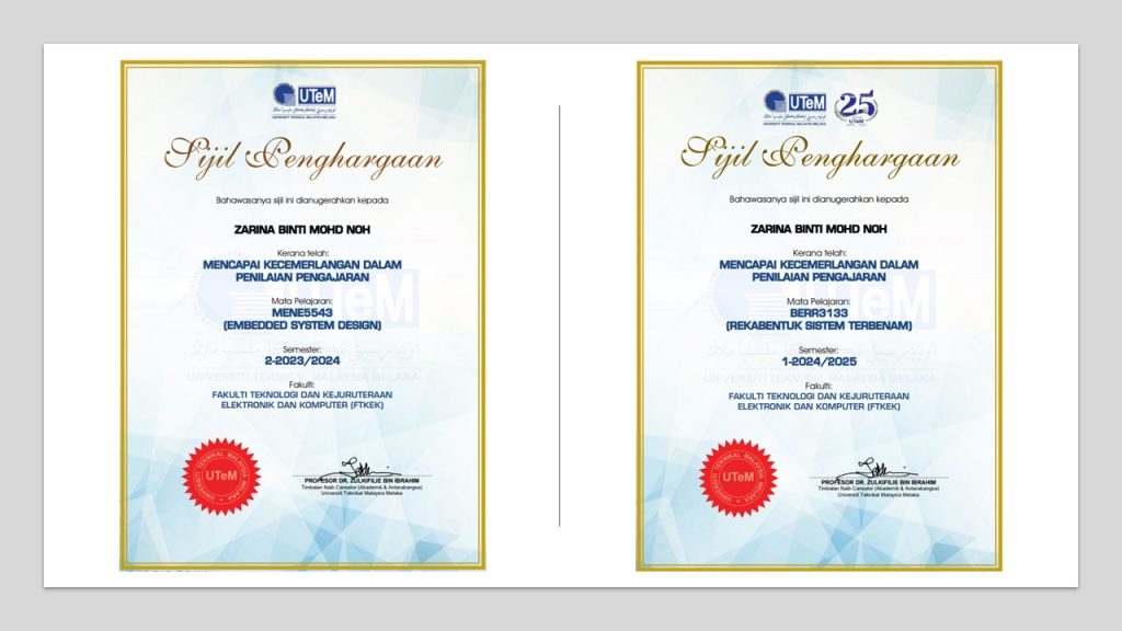 I started working at Universiti Teknikal Malaysia Melaka (UTeM) as a Tutor in 2006 in Fakulti Kejuruteraan Elektronik dan Kejuruteraan Komputer (FKEKK). Currently, I’m a Senior Lecturer at Fakulti Teknologi dan Kejuruteraan Elektronik dan Komputer (FTKEK) in UTeM under the Engineering Department. The path as an academician had open up several ways for me to contribute a bit to the nation, in which one of those is through knowledge sharing in class.